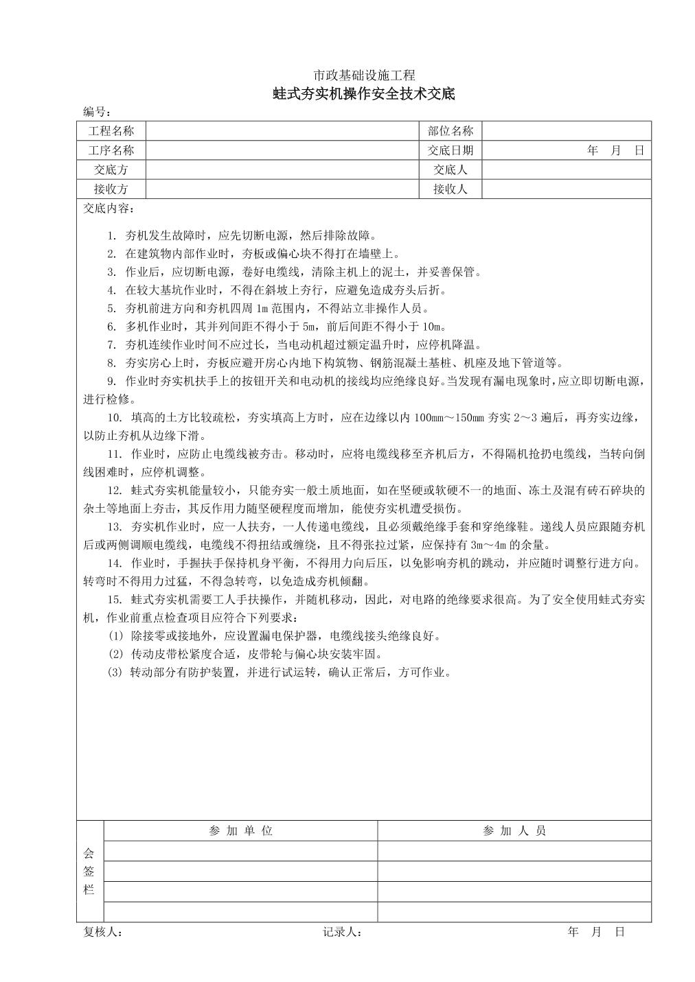 蛙式夯实机操作安全技术交底